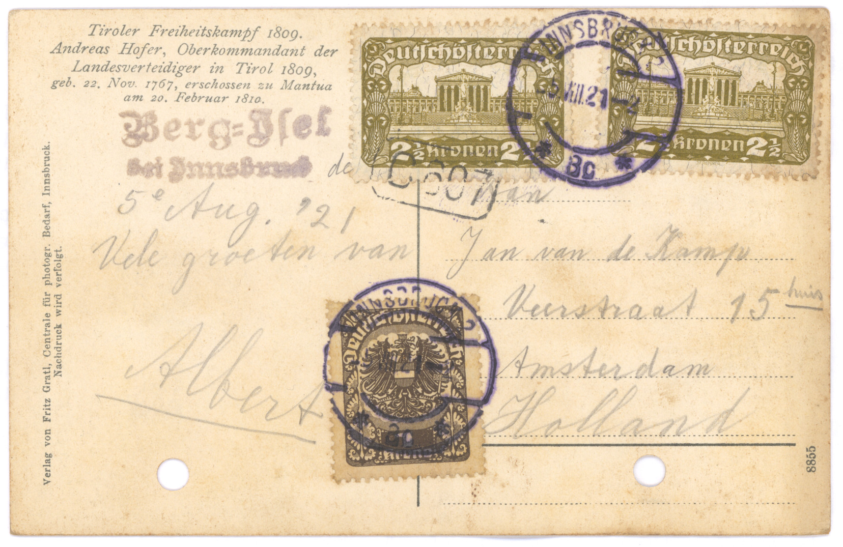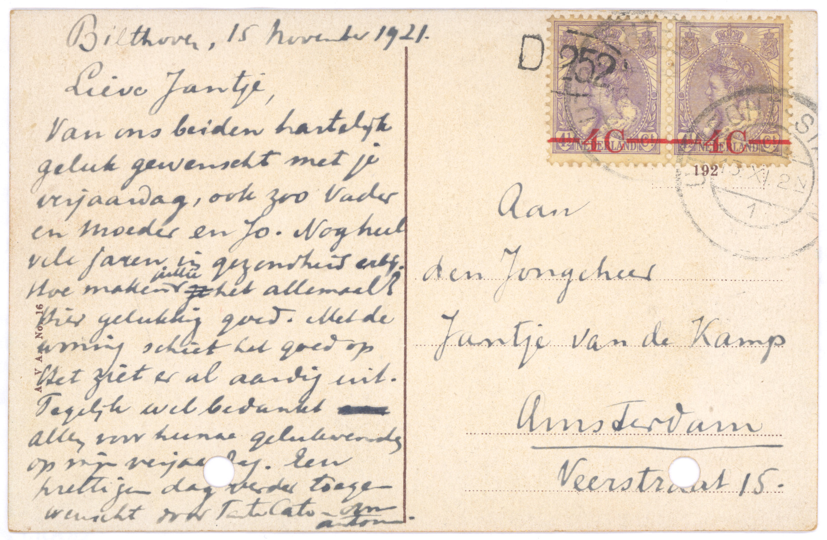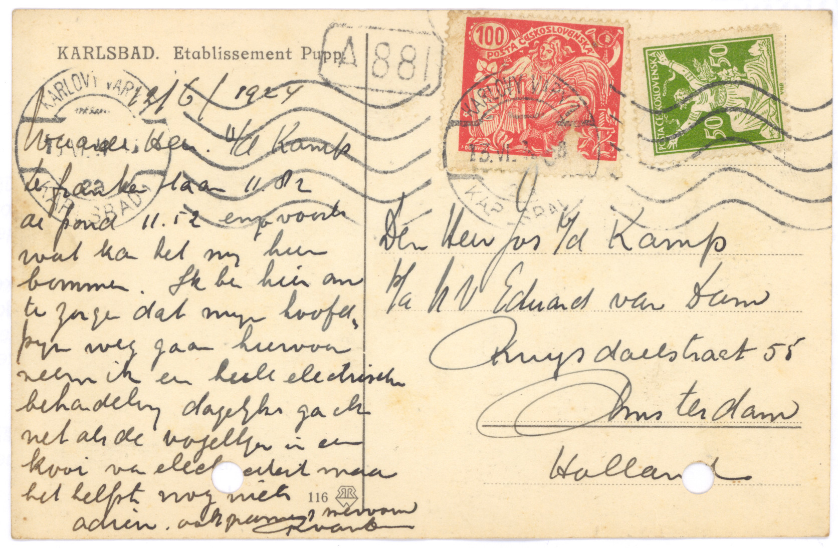 Briefkaarten aan de familie van de Kamp