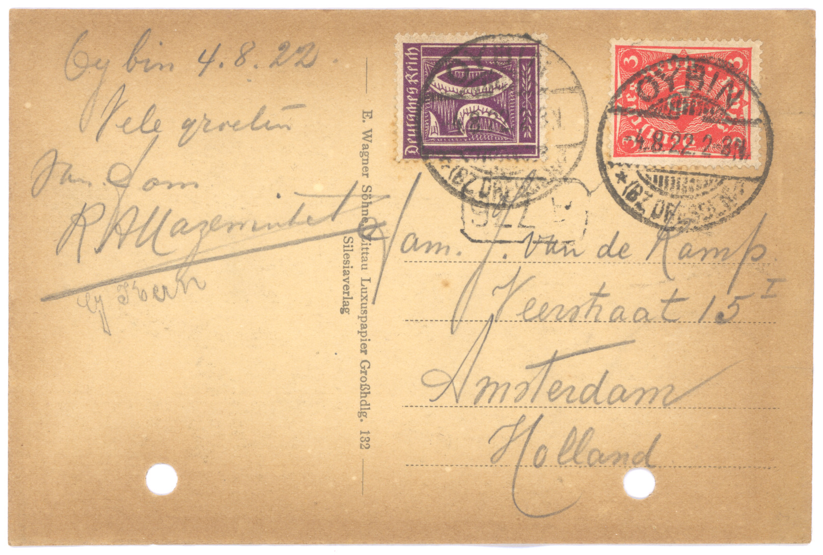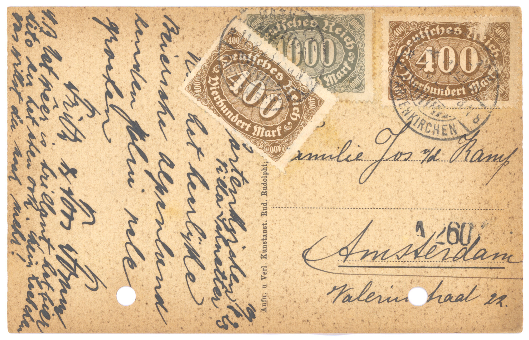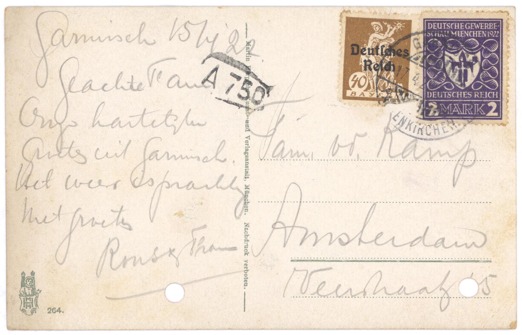 Een vakantiekaart uit Garnisch, Beieren. De inflatie in Duitsland is te merken aan de postzegels.